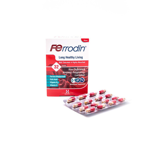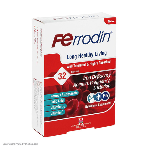 - فرودین، حاوی آهن به فرم بیس گلایسینات، فولیک اسید، ویتامین B12 و ویتامین C