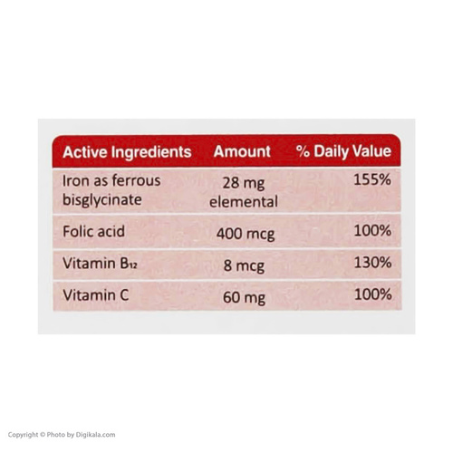 منع مصرفاز مصرف همزمان با لبنیات، چای و قهوه خودداری شود. پس از بهبود علائم آزمایشگاهی کم خونی، جهت پر کردن ذخایر آهن بدن بنا به تجویز پزشک مصرف فرآورده 3 الی 6 ماه ادامه می یابد. این محصول مکمل غذایی بوده و برای تشخیص، پیشگیری یا درمان ناست. در صورت مصرف هرگونه دارو، قبل از مصرف با پزشک مشورت نمایید. در دوران بارداری و شیردهی قبل از مصرف با پزشک مشورت نمایید.