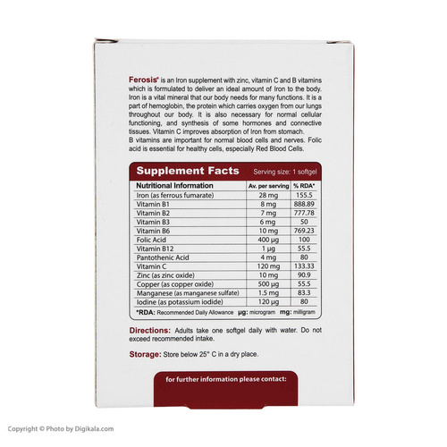 - قرص ferosis، حاوی ویتامین C جهت کمک به افزایش جذب آهن