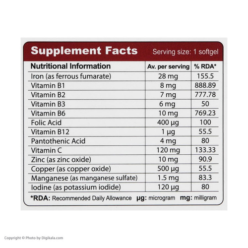 حاوی ویتامین های گروه ب B و C ، زینک و سایر مواد معدنی